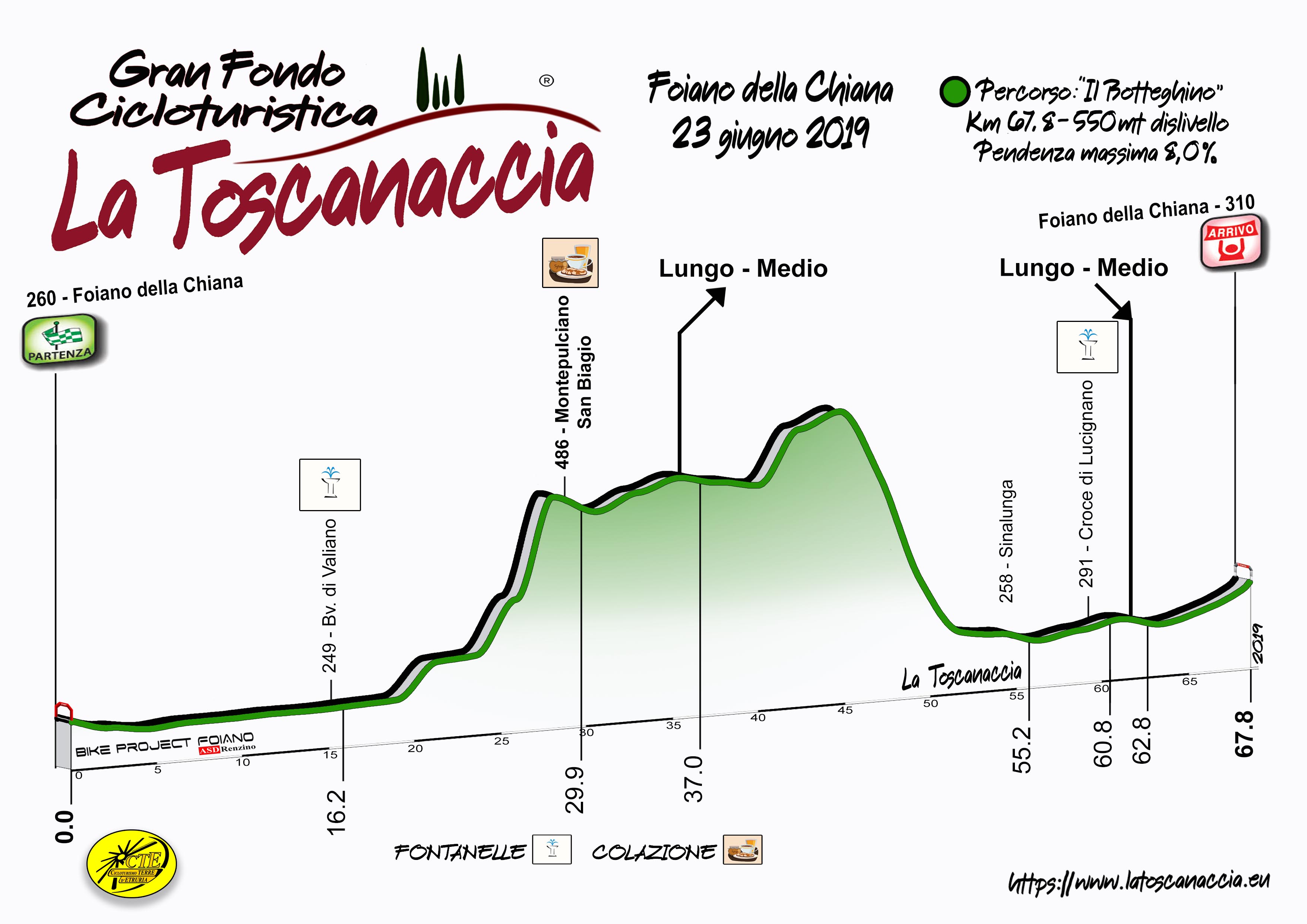 C’è il “Botteghino”, 67 km. attraverso i vigneti del Nobile di Montepulciano conosciuti in tutto il mondo.