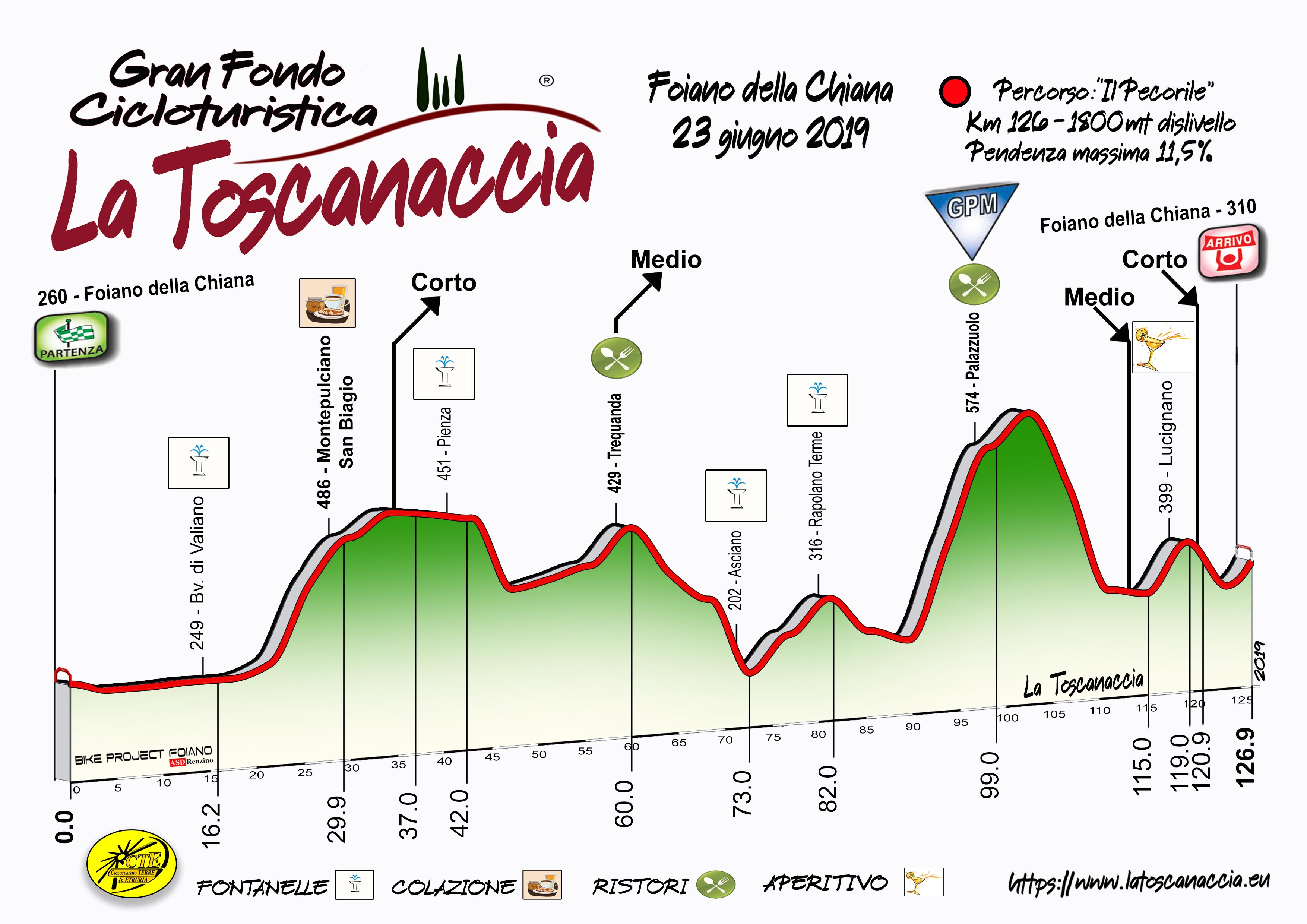 Infine il “Pecorile”, 126 km., che attraverso i paesi di Trequanda, Asciano e Rapolano Terme ci condurrà in mezzo a quello che è stato l’unico deserto italiano, il cui territorio oggi è meglio conosciuto come le Crete Senesi.